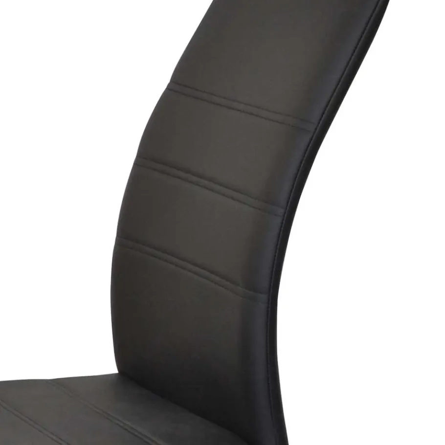 Die Sitzflächen der vier Stühle sind mit hochwertigem Kunstleder aus 100 % Polyurethan bezogen. Dieses Material verbindet elegantes Aussehen mit beeindruckender Alltagstauglichkeit. Es ist weich, anschmiegsam und zugleich enorm strapazierfähig – ideal für intensiven Gebrauch. Dank der pflegeleichten Oberfläche genügt ein feuchtes Tuch, um Flecken zu entfernen, während dekorative Ziernähte die Sitzfläche optisch strukturieren und den edlen Charakter der Polsterung betonen.