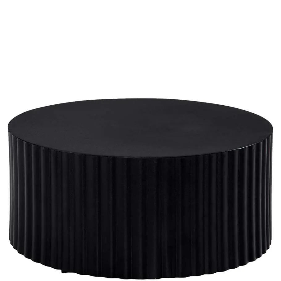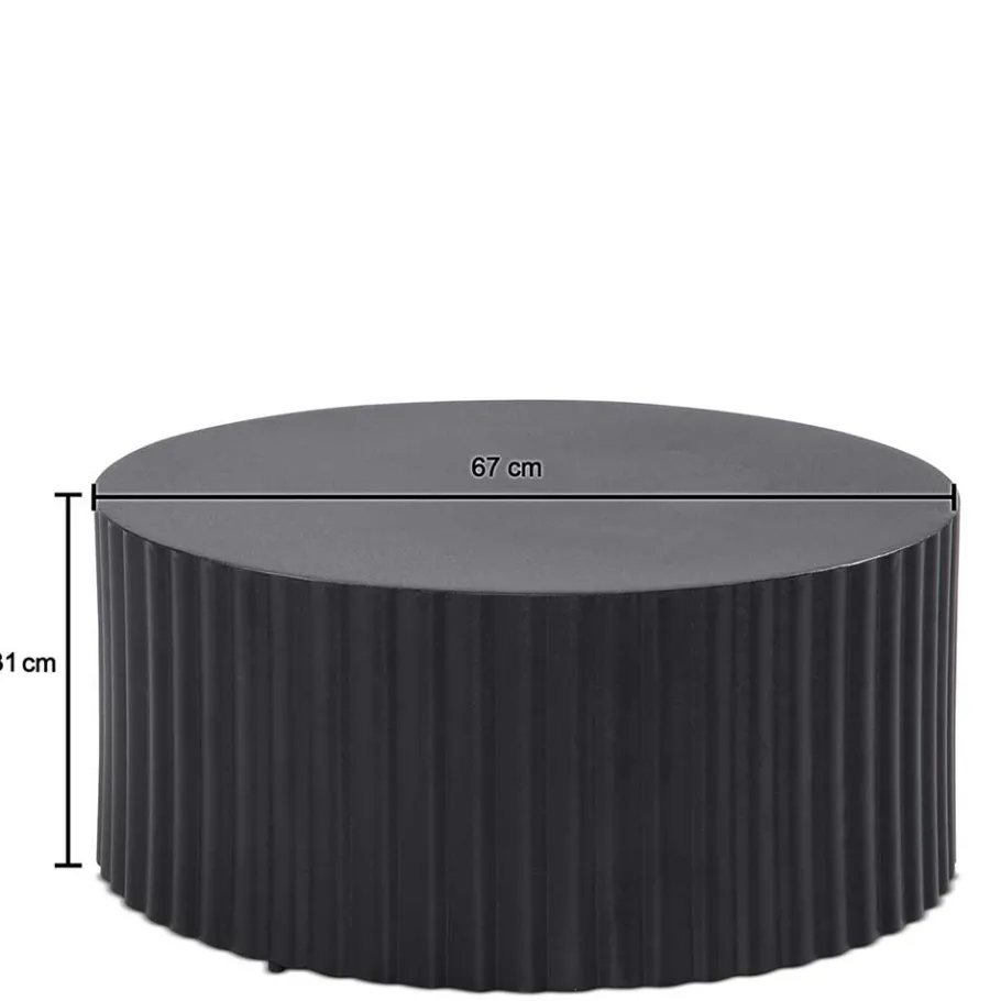 Der „Crocetta“ Couchtisch besteht aus robustem und langlebigem Metall, das für seine Widerstandsfähigkeit und Stabilität bekannt ist. Die Tischplatte hat eine Materialstärke von 0,5 cm und ist pulverbeschichtet, was sie besonders pflegeleicht macht. Das zylinderförmige Gestell, das auf einer breiten Basis steht, begeistert durch seine vertikalen Rillen und verleiht dem Tisch eine außergewöhnliche Optik.