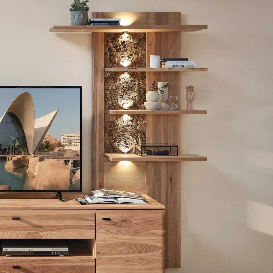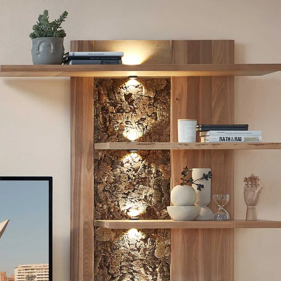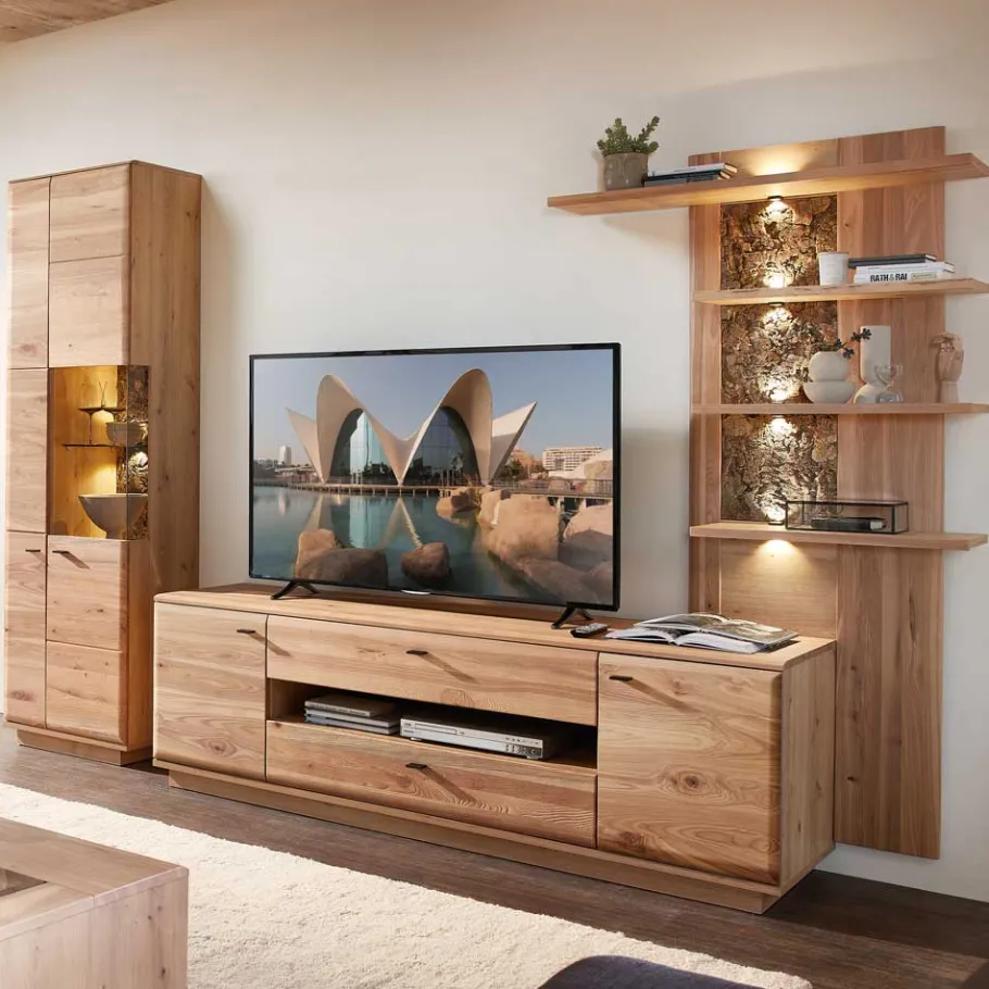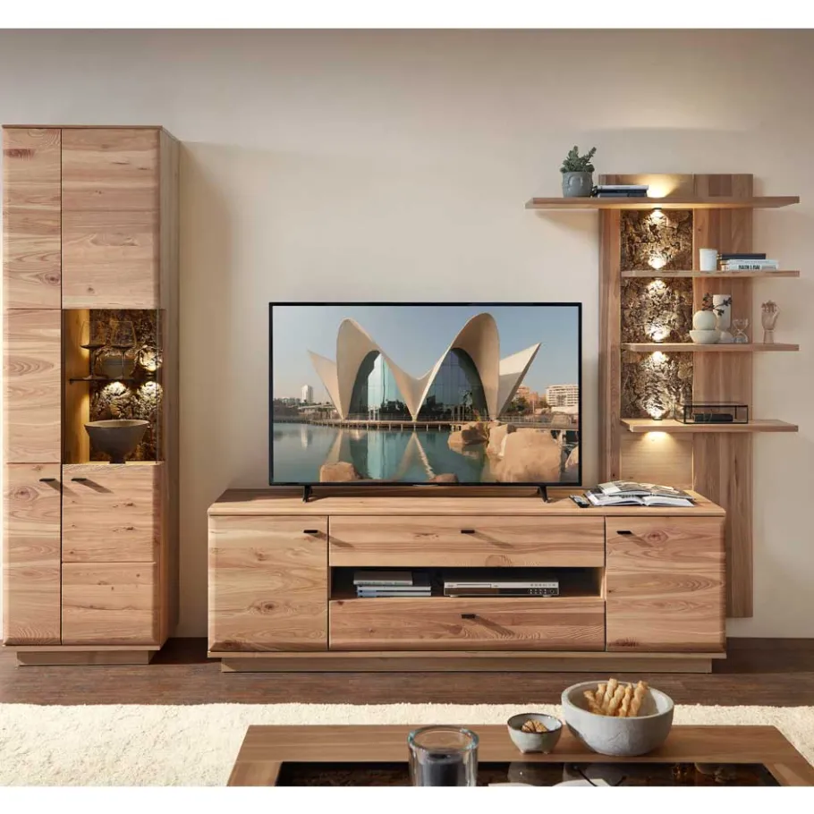 - Stilsichere Wohnwand in Esche- und Wildeichefarben
