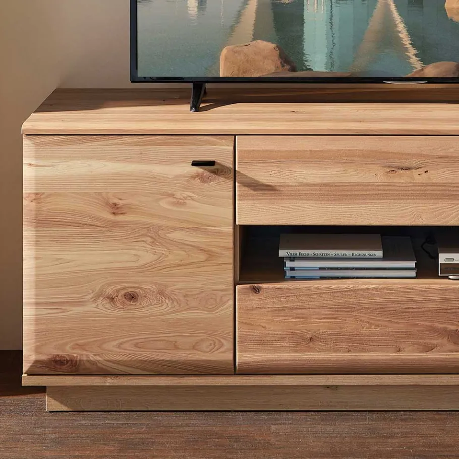 - Aus Esche Massivholz (Front) und MDF (Korpus) hergestellt
