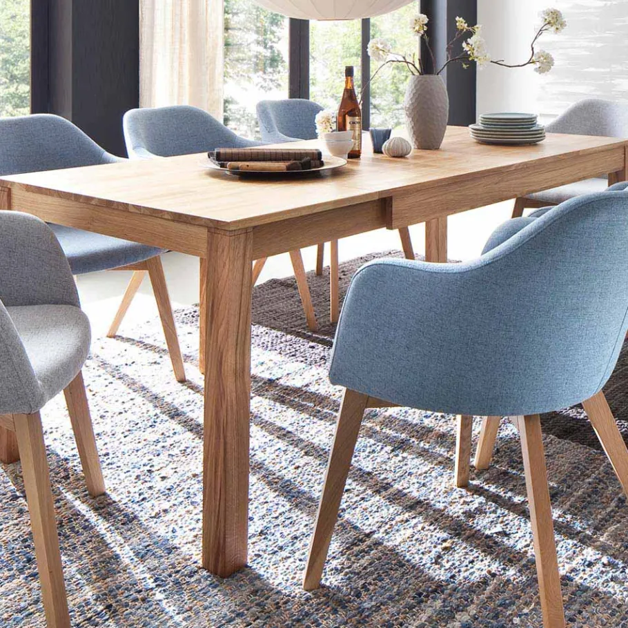 Der Esstisch Grosma ist das perfekte Möbelstück für jedes Zuhause. Hergestellt aus hochwertigem Eiche Massivholz, ist der Tisch sowohl strapazierfähig als auch langlebig. Die natürlich geölte Holzoberfläche verleiht dem Tisch eine warme und einladende Atmosphäre, während das klassische Gesamtdesign eine zeitlose Eleganz vermittelt.