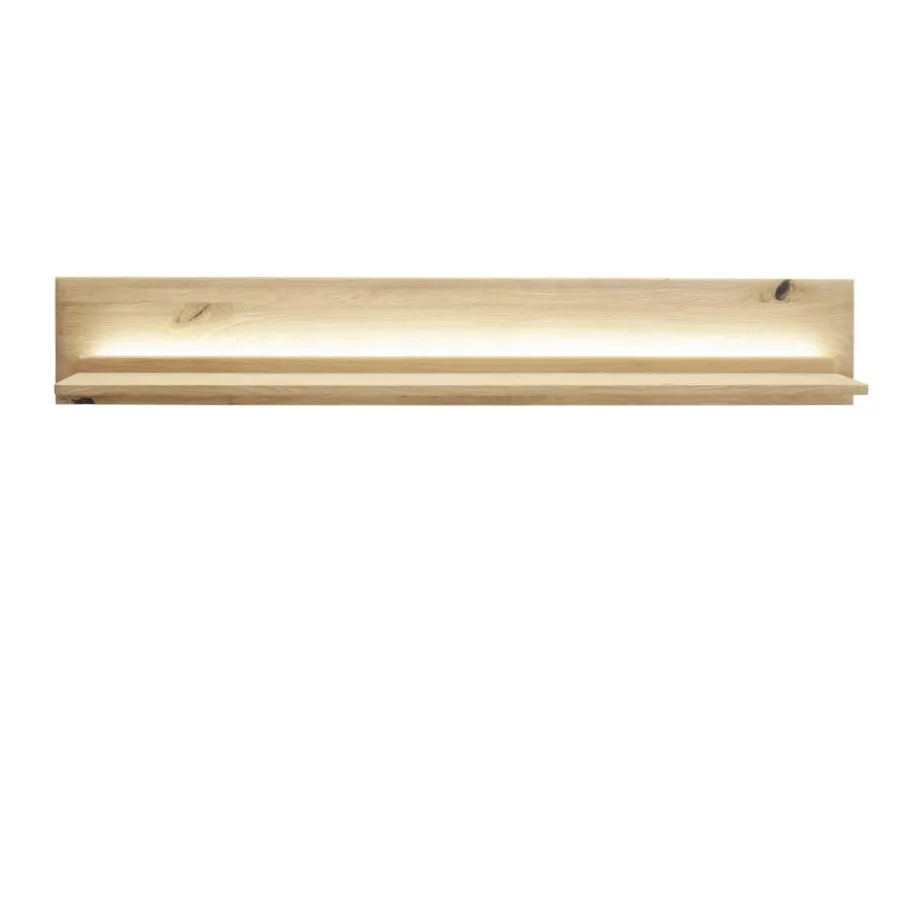 Das passende Wandboard vervollständigt das Ensemble. Mit einer Breite von 150 cm und einer maximalen Belastbarkeit von 5 kg eignet es sich ideal zur Präsentation von Deko, Bildern oder kleinen Sammlungen. Dreiseitig mit massiven Anleimern gearbeitet und inklusive verstellbarer Hängebeschläge zur Wandmontage, liefert es den perfekten Abschluss – auch hier sorgt ein 135 cm langes LED-Band für indirekte Beleuchtung.