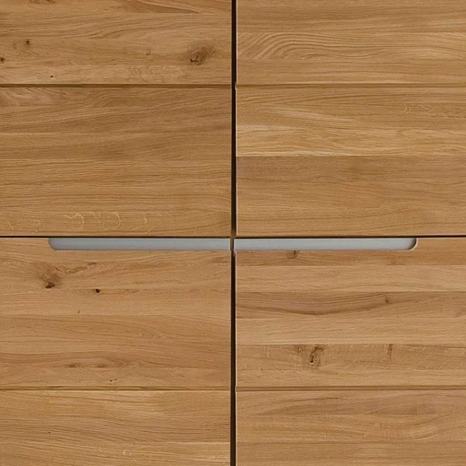 Die Wohnwand „Croconia“ besticht nicht nur durch ihr ansprechendes Design, sondern auch durch die Verwendung von massiver Wildeiche. Die charakteristischen Merkmale der Wildeiche, wie ihre markante Maserung und die warmen Farbtöne, verleihen jedem Möbelstück eine einzigartige Ausstrahlung. Gleichzeitig sorgt die robuste Beschaffenheit der Wildeiche für eine außergewöhnliche Langlebigkeit und Widerstandsfähigkeit.