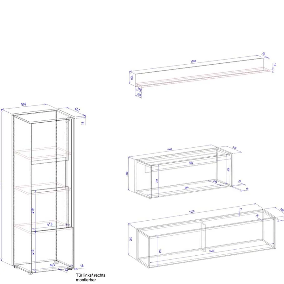 Erleben Sie modernes Design und Funktionalität in einer perfekten Symbiose mit unserer Wohnwand „Nonessia“. Dieses Möbelstück ist mehr als nur ein Einrichtungsgegenstand – es ist ein Statement für stilvolles Wohnen. Mit seiner Kombination aus Hängeschrank, Hängesekretär, Vitrine und Wandboard bietet „Nonessia“ vielfältige Gestaltungsmöglichkeiten und praktischen Stauraum.