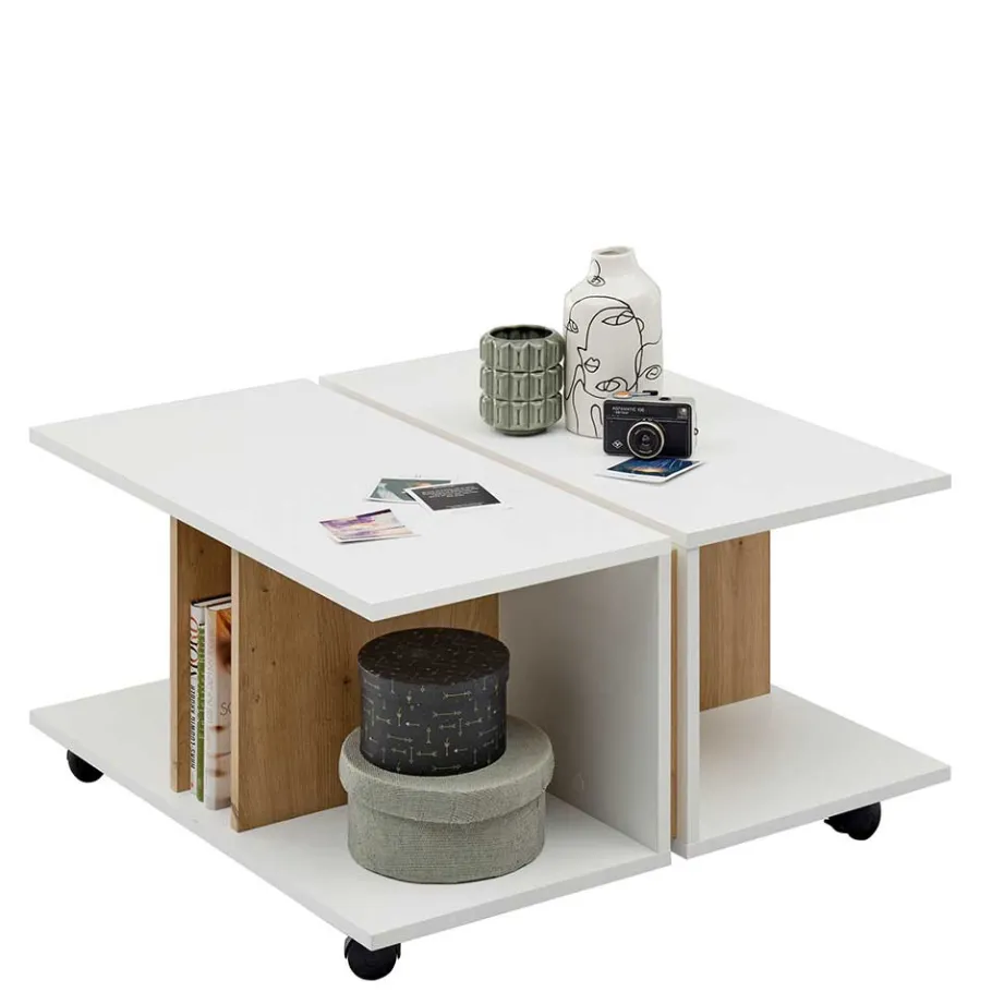 - Pfiffiger Couchtisch in Weiß und Wildeichefarben