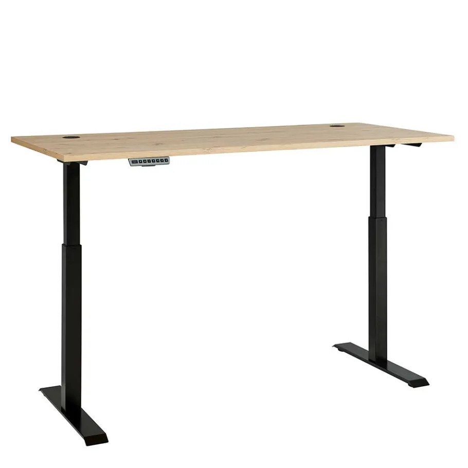 - Optimaler Schreibtisch in Wildeichefarben und Schwarz