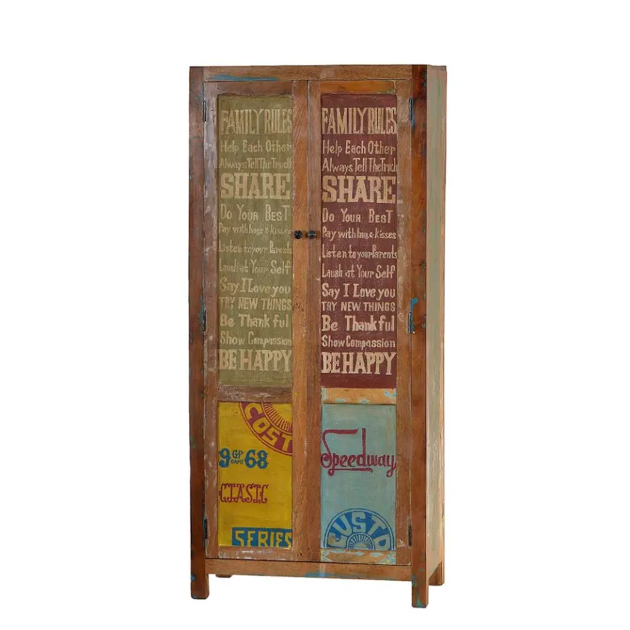 Vintage Look bedeutet, Schönheit in der Geschichte zu sehen. Jedes Stück der „Creek“-Serie ist aus massivem Recyclingholz gefertigt, was jedem Möbelstück eine eigene Geschichte und einen individuellen Charakter verleiht. Die bunten, individuell lackierten Oberflächen und die Fronten, die mit Schriften im Design von alten Werbeplakaten versehen sind, schaffen ein künstlerisches und umweltfreundliches Ambiente in Ihrem Eingangsbereich.
