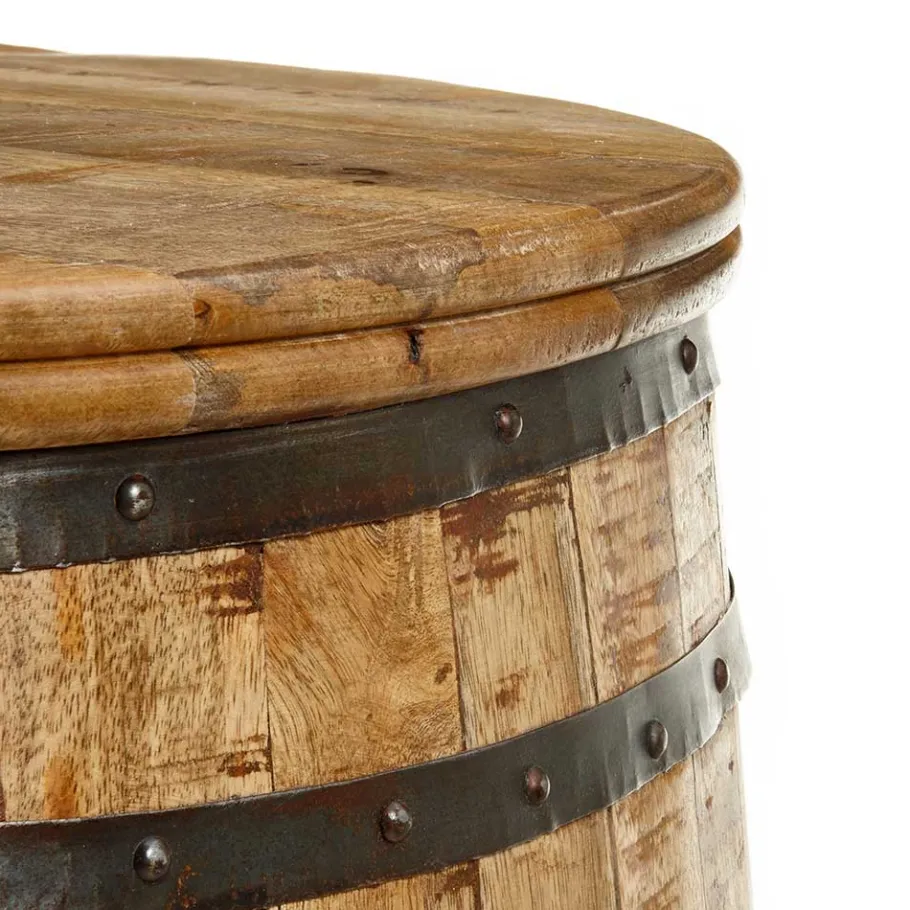 - Rustikales Barfass in Mangoholz Naturfarben und Schwarzbraun