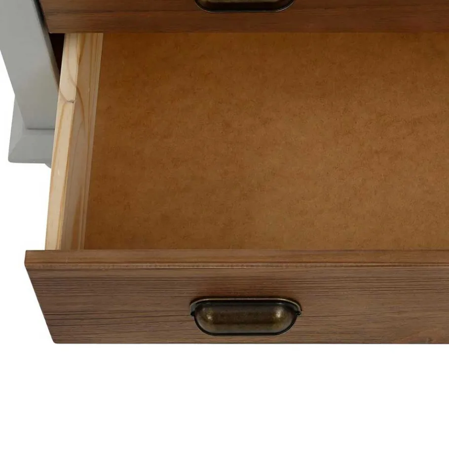Ob Kleidung, Dokumente oder Alltagsgegenstände – mit sechs geräumigen Schubladen bietet die Kommode ausreichend Platz für eine übersichtliche Aufbewahrung. Zwei schmalere Schubladen oben eignen sich perfekt für kleinere Utensilien, während die vier größeren Schubladen darunter zusätzlichen Stauraum bereitstellen. Ein besonderer Hingucker sind die stilvollen Muschelgriffe aus Metall in Altmessing, die den Landhaus-Charakter wunderbar abrunden.