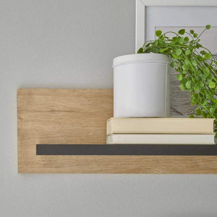 Gefertigt aus robustem Holzwerkstoff überzeugt die Anbauwand „Hengas“ mit pflegeleichten, melaminbeschichteten Oberflächen in authentischer Eiche-Gold-Optik. Diese sind widerstandsfähig gegen Kratzer und Feuchtigkeit und sorgen so für eine dauerhaft schöne Optik. Dekorative, filigran verzierte Metallgriffe in Altsilberfarben runden das Design perfekt ab und betonen den hochwertigen Charakter der gesamten Wohnwand.