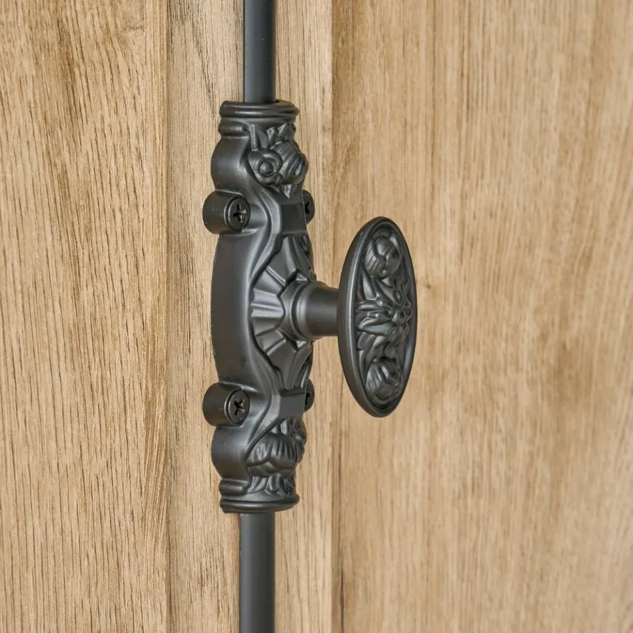 - Dekorative, filigran verzierte Griffe in Altsilberfarben aus Metall