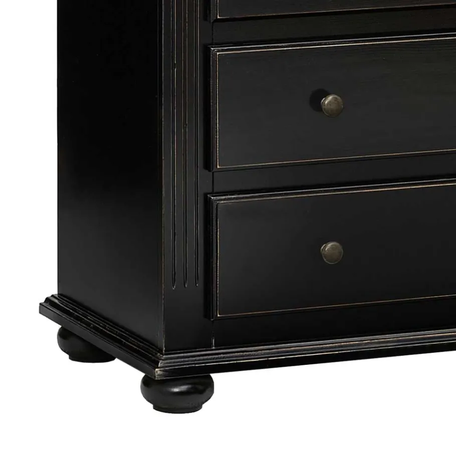 Vertrauen Sie auf die hervorragende Schreinerqualität, die in jedem Millimeter der Kommode spürbar ist. Die massive Rückwand aus Spanplatte gewährleistet eine zusätzliche Stabilität, während die gedrechselten Kugelfüße nicht nur für einen sicheren Stand sorgen, sondern auch das exquisite Design abrunden.