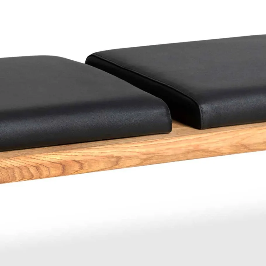 Die „Jessmine“ Bank besticht nicht nur durch ihr stilvolles Äußeres, sondern auch durch die Verwendung erstklassiger Materialien. Das Massivholz aus Wildeiche präsentiert sich mit einer einzigartigen Baumkante, die die Individualität jedes Stücks unterstreicht. Die Sitzfläche ist mit einer komfortablen Schaumstoffpolsterung versehen und verfügt über einen Bezug aus hochwertigem, schwarzem Echtleder. Die Kombination aus Holz und Leder sorgt für ein luxuriöses Sitzgefühl, während das robuste Metallbügelgestell in Trapezform Stabilität und Langlebigkeit garantiert.