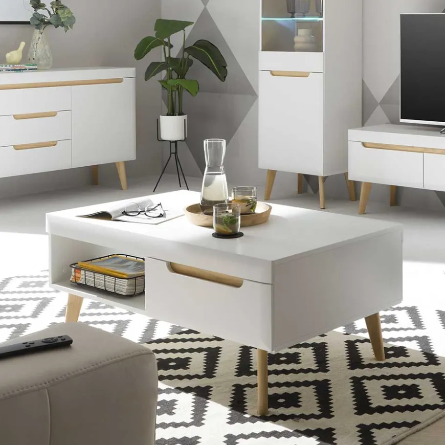 Eleganz trifft auf praktische Durchdachtheit – der Wohnzimmertisch „Ginko“ ist ein wahres Schmuckstück für jedes Wohnzimmer, das im beliebten Skandi-Design gehalten ist. Dieser Stil zeichnet sich durch klare Linien, Funktionalität und eine helle, luftige Farbgestaltung aus, perfekt um moderne mit traditionellen Elementen harmonisch zu vereinen.