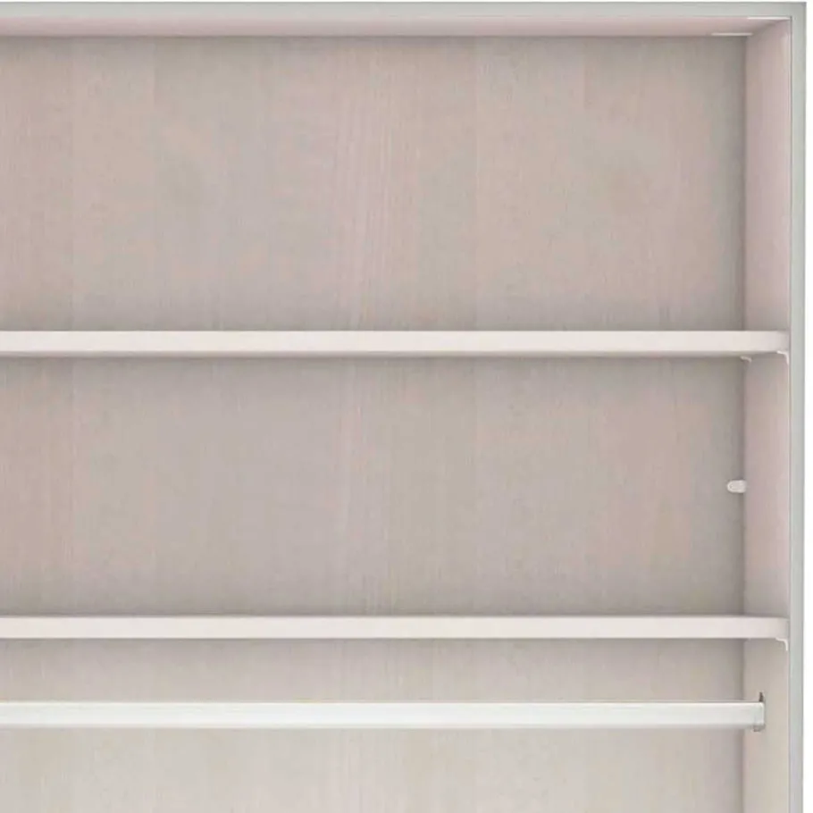 - Drei Fachelemente innen mit einer Breite von 96,4 cm, jeweils mit zwei Einlegeböden und einer Kleiderstange ausgestattet