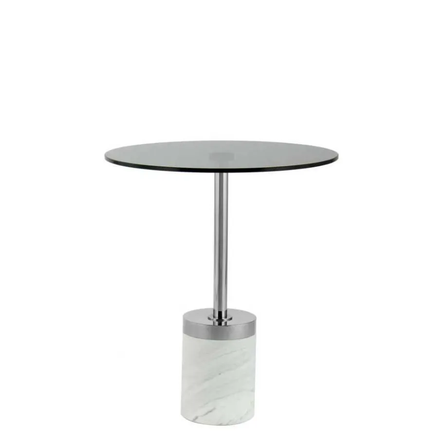 Der Beistelltisch „Lania“ besteht aus ausgesuchten Materialien, die nicht nur für seine ansprechende Optik, sondern auch für seine Langlebigkeit sorgen. Die 10 mm starke Glasplatte in Rauchglas-Optik sorgt für einen edlen Look und ist gleichzeitig besonders pflegeleicht. Das Fußgestell aus Edelstahl glänzt nicht nur mit seiner schlichten Eleganz, sondern verleiht dem Tisch auch eine stabile Standfestigkeit. Der Sockel aus weißem Marmor bringt zusätzlich eine luxuriöse Note in Ihr Zuhause und garantiert eine solide Basis für das Möbelstück. Die glatten Oberflächen lassen sich einfach reinigen, sodass der Tisch immer in bester Form bleibt.