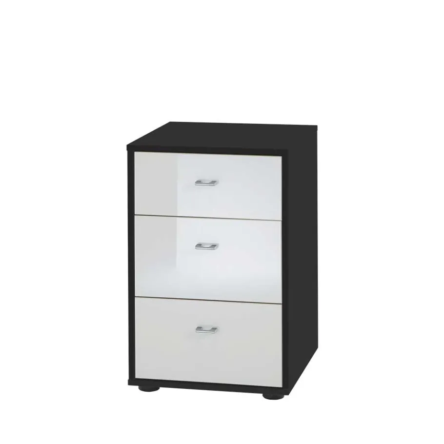 - Attraktive Nachtkommode in Weiß und Schwarz