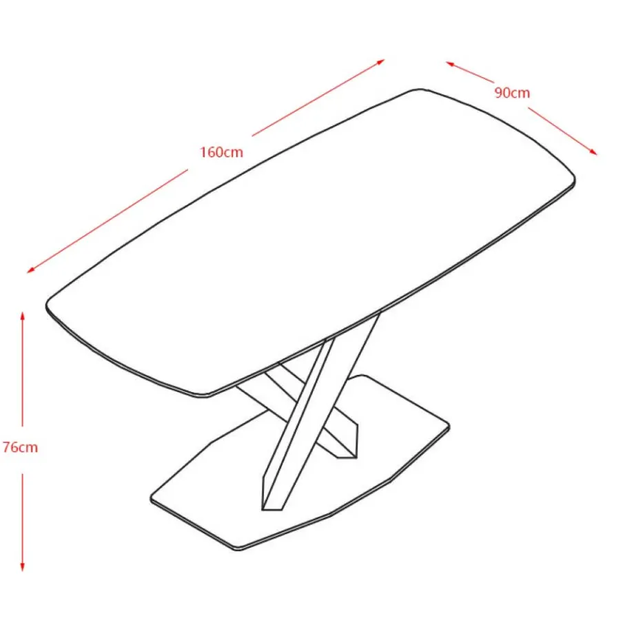 Mit einer Höhe von 75 cm, einer Tiefe von 90 cm und der Wahl zwischen einer Breite von 160 cm oder 180 cm passt sich der Tisch perfekt an Ihre Raumgegebenheiten an. Die hochglänzende Tischplatte in weißer Marmoroptik ist ein wahrer Blickfang und sorgt für ein luxuriöses Ambiente. Die Tischplatte mit einer Stärke von ca. 12 mm und abgerundeten Kanten verbindet Sicherheit mit Eleganz.