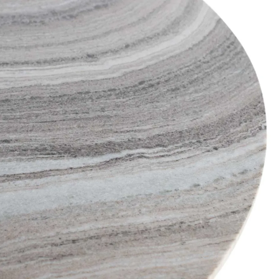 Das außergewöhnliche Untergestell aus Aluminium überzeugt nicht nur optisch, sondern auch durch seine Stabilität. In einer konischen Form gestaltet, sorgt es für eine optimale Gewichtsverteilung und einen sicheren Stand. Die gelungene Kombination aus der kühlen Marmorplatte und dem warmen Braunton des Gestells schafft eine stilvolle Balance zwischen Modernität und zeitloser Wohnkultur.