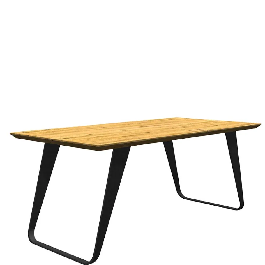 Massives Eichenholz kommt für die Herstellung der etwa 4 cm starken Platte des Esszimmertisches Lash zum Einsatz. Die Oberflächen des Massivholzes sind im Naturton geölt, wodurch die ausdrucksstarke Maserung der Eiche besonders gut zur Geltung kommt. Zur Verfeinerung des Erscheinungsbildes ist die Tischplatte mit Schweizer Kanten versehen.