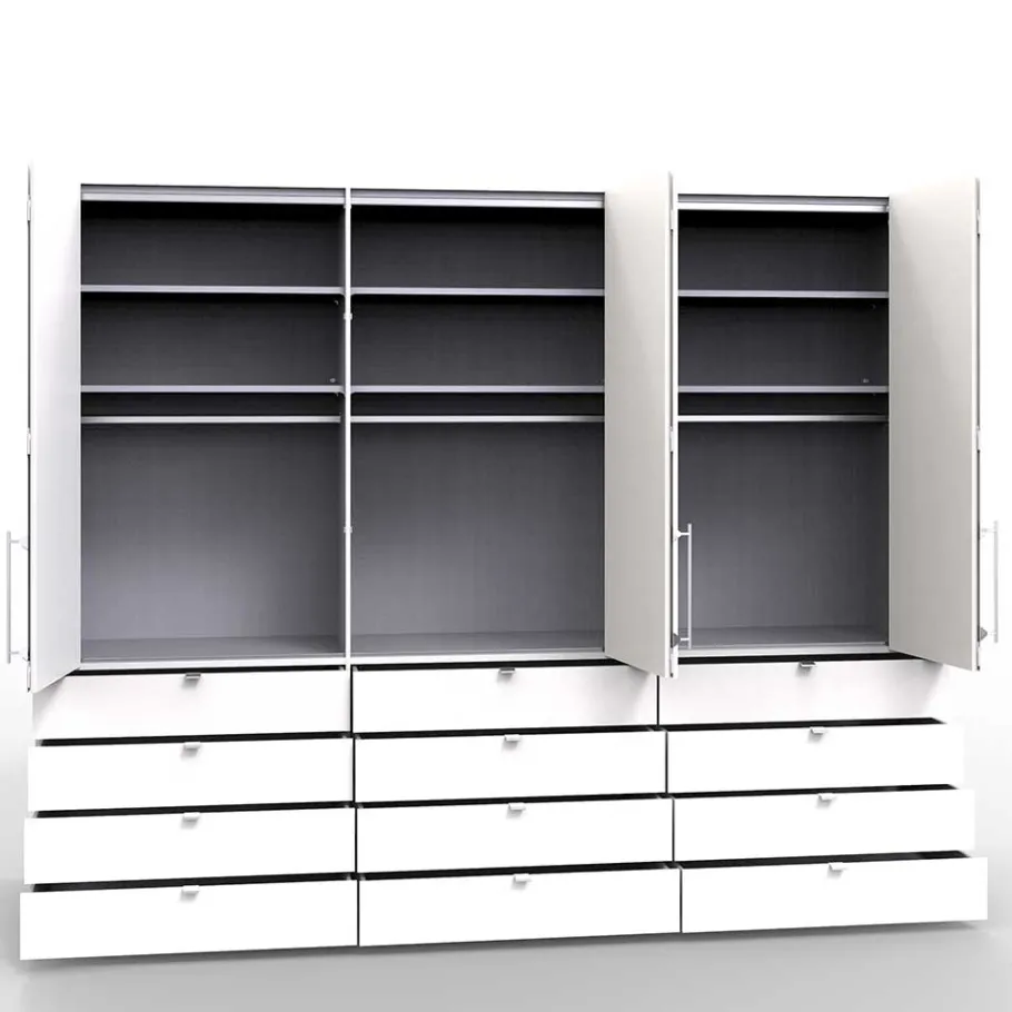 - Zwölf Schubladen (je 100 cm breit) mit Metallauszug, Soft Close und Selbsteinzug