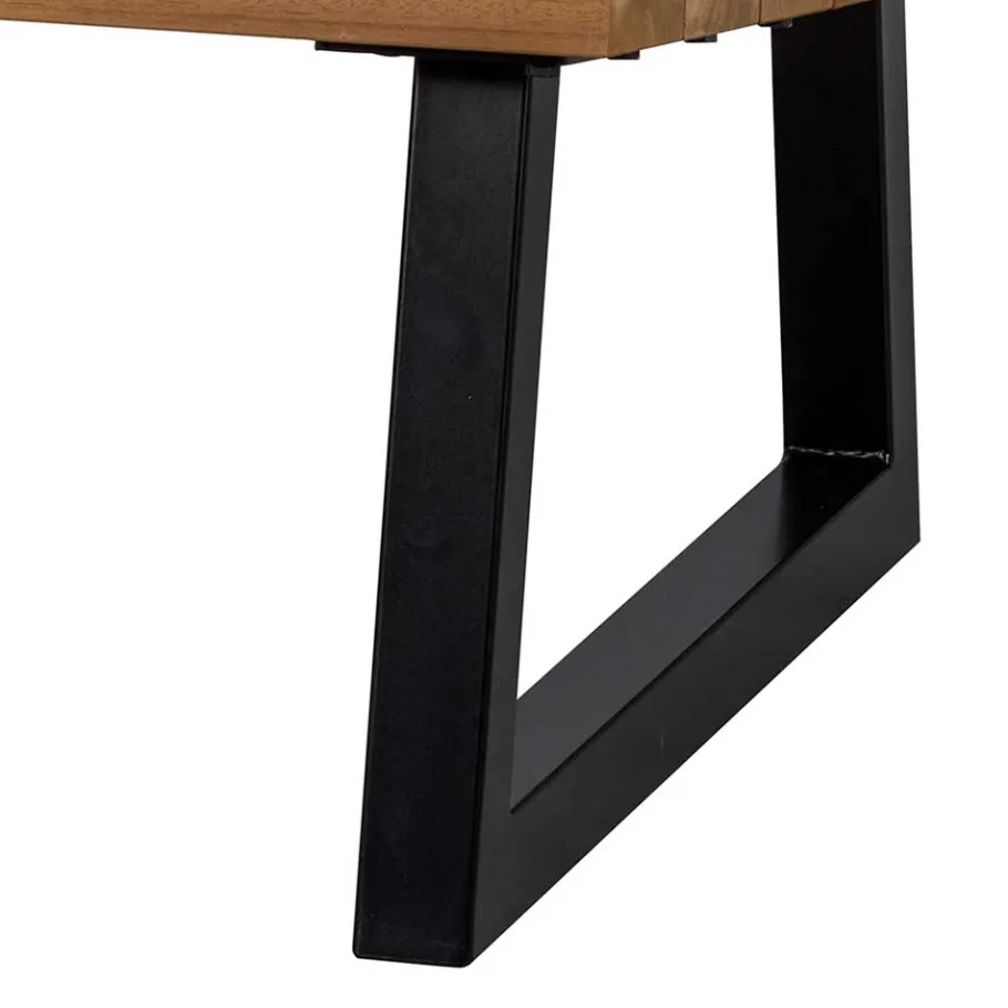 Mit ihrem gradlinigen Design präsentiert sich die Bank in einer klaren, eleganten Form, die in jedes moderne Umfeld passt. Die Kombination aus Abachi Holz in Naturfarben und dem mattschwarzen Gestell aus pulverbeschichtetem Metall gibt der Bank eine stilvolle und dennoch zurückhaltende Ausstrahlung. Das Naturholz bringt eine warme, natürliche Optik in Ihren Außenbereich, während das schwarze Metallgestell für einen zeitgenössischen Kontrast sorgt – perfekt für ein harmonisches Gesamtbild.