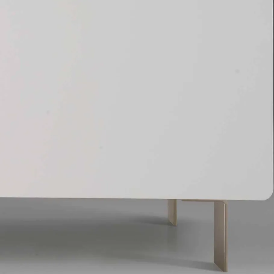 Das Sideboard „Araulon“ steht auf einem schlanken Metallwinkelgestell, das nicht nur für einen stabilen Stand sorgt, sondern auch das moderne Design unterstreicht. Die dezenten Griffmulden und die nahezu grifflose Gestaltung tragen zur minimalistischen Ästhetik bei und lassen das Möbelstück besonders elegant wirken.