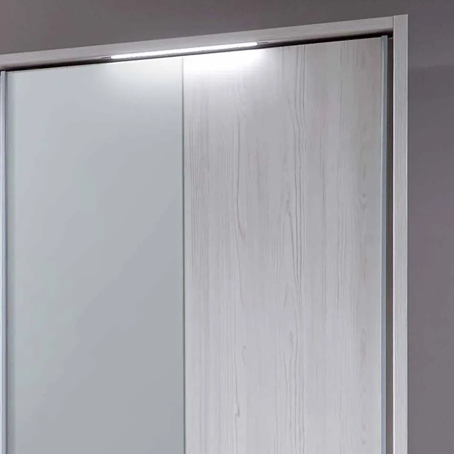 Zwei integrierte Linienleuchten setzen den Schrank in das richtige Licht und sorgen für eine angenehme Atmosphäre in deinem Schlafzimmer. Dank der Energieeffizienzklasse LED schonst du nicht nur deinen Geldbeutel, sondern auch die Umwelt. So wird der Kleiderschrank „Arneta“ zu einem rundum durchdachten und zukunftsfähigen Möbelstück.