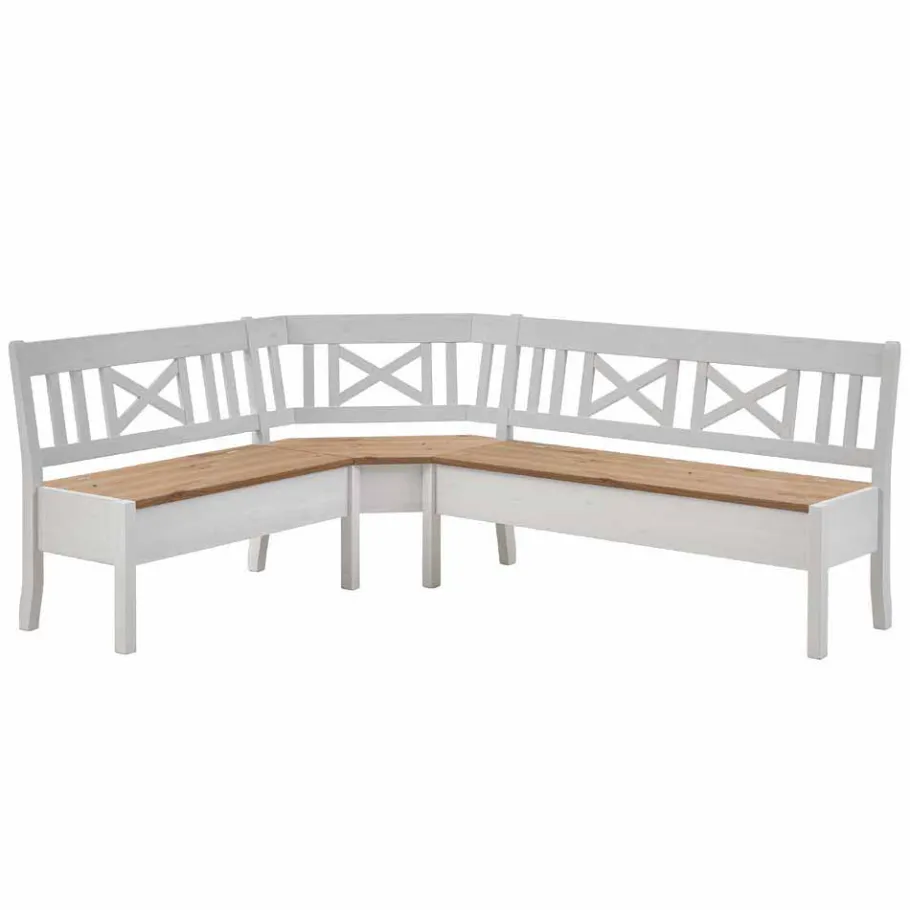- Gemütliche Eckbank in Weiß und Kiefer laugenfarbig