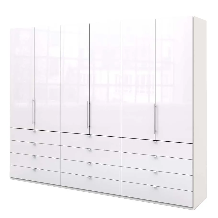 Der Kleiderschrank „Dolienca“ wird in Deutschland produziert und besteht aus wertiger Spanplatte. Die Oberfläche der Front ist mit weißem Glas beschichtet, während der Korpus in elegantem Weiß foliert ist. Dieses moderne und zeitlose Design ermöglicht eine problemlose Kombination mit verschiedenen Einrichtungsstilen.