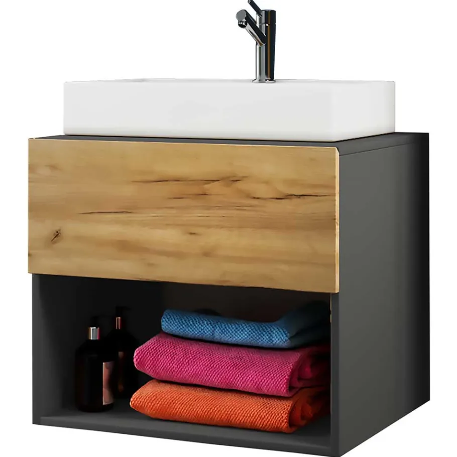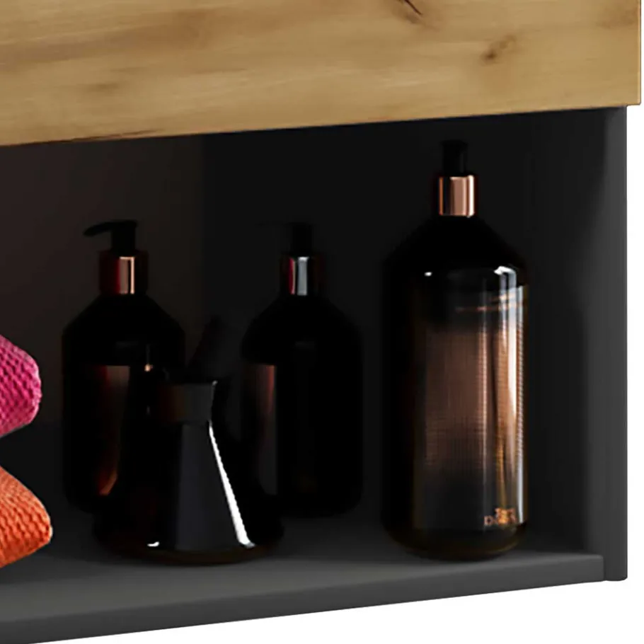 - Praktischer Waschbeckenschrank in Anthrazit und Wildeiche Honigfarben
