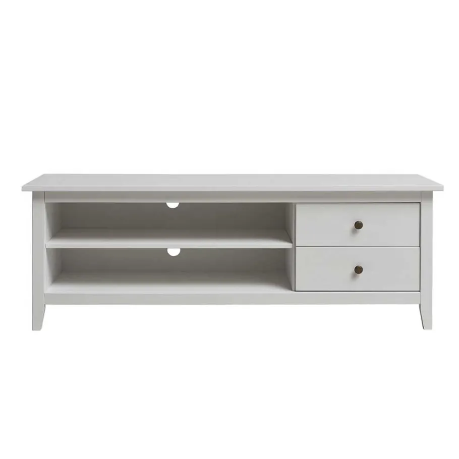 Das TV-Lowboard bietet übersichtlichen Stauraum für Ihre Mediengeräte und sämtliches Zubehör. Links befinden sich zwei offene Gerätefächer mit den Maßen je ca. 85,6 x 15,6 x 34,4 cm, ideal für Receiver, Spielkonsole oder Blu-ray-Player. Dank der Rückwand mit zwei Öffnungen ist auch das Kabelmanagement ein Kinderspiel. Rechterhand finden Sie zwei praktische Schubladen, die weiteren Stauraum für DVDs, Fernbedienungen oder Zeitschriften bieten.