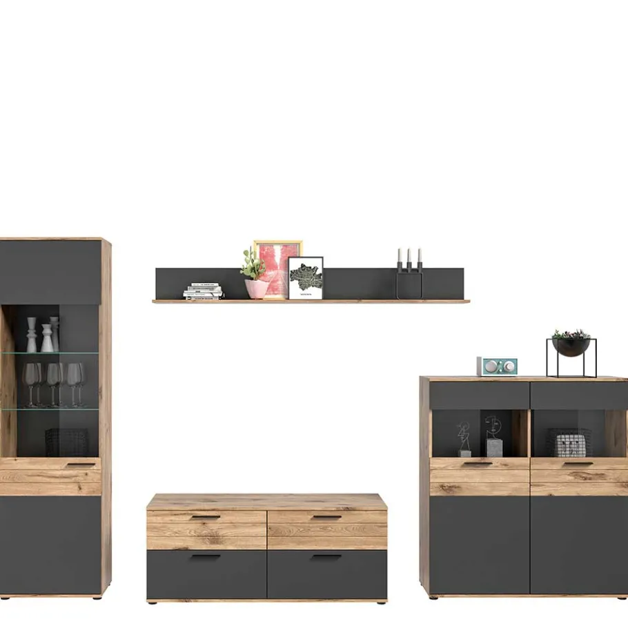 - Trendstarke Wohnwand in Wildeichefarben und Grau