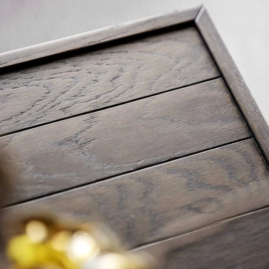 - Holzoberflächen braun lackiert, durchscheinende Maserung