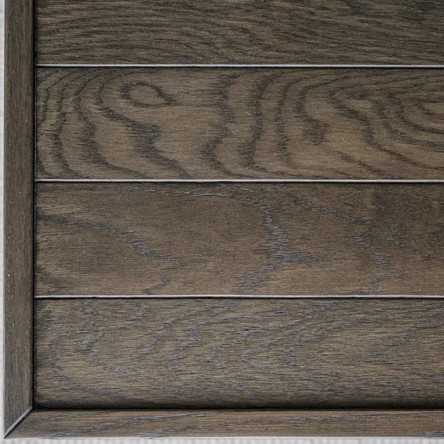 - Tischplatte in Paneeloptik mit einer Stärke von ca. 2,5 cm, aus Spanplatte mit Echtholzfurnier gefertigt