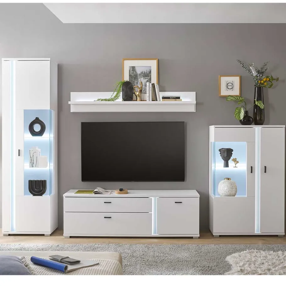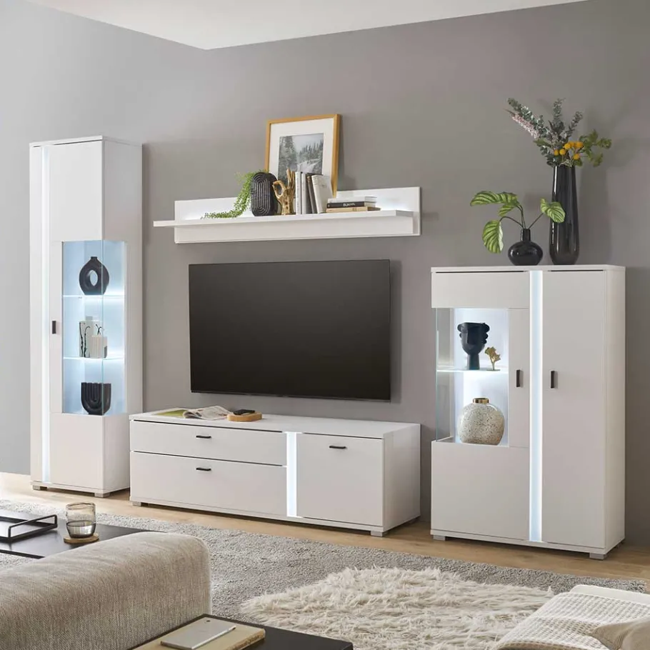 - Ansprechende Wohnwand in Weiß