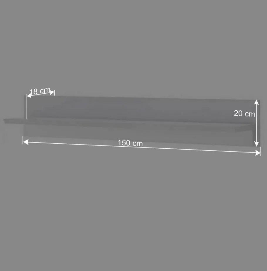 - Das Wandboard (150 x 20 x 18 cm): Ideal für Dekoration und Bücher. Dieses Wandboard bietet einen großzügigen Ablageboden, der Ihre Lieblingsstücke gekonnt in Szene setzt. Ob Vasen, Bilderrahmen oder moderne Skulpturen – alles findet seinen Platz.